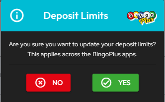 5. You can then select whether you want a daily, weekly or monthly deposit limit setting. Select the one you would like to change and type in the desired amount. When you have finished setting your deposit limits press 'Confirm' and then 'Yes' on the popup
